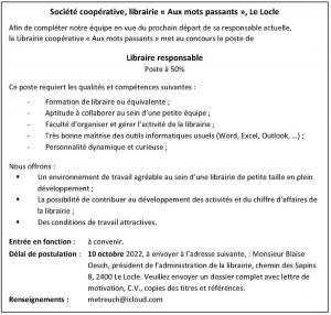 Librairie coopérative Aux Mots Passants, Le Locle